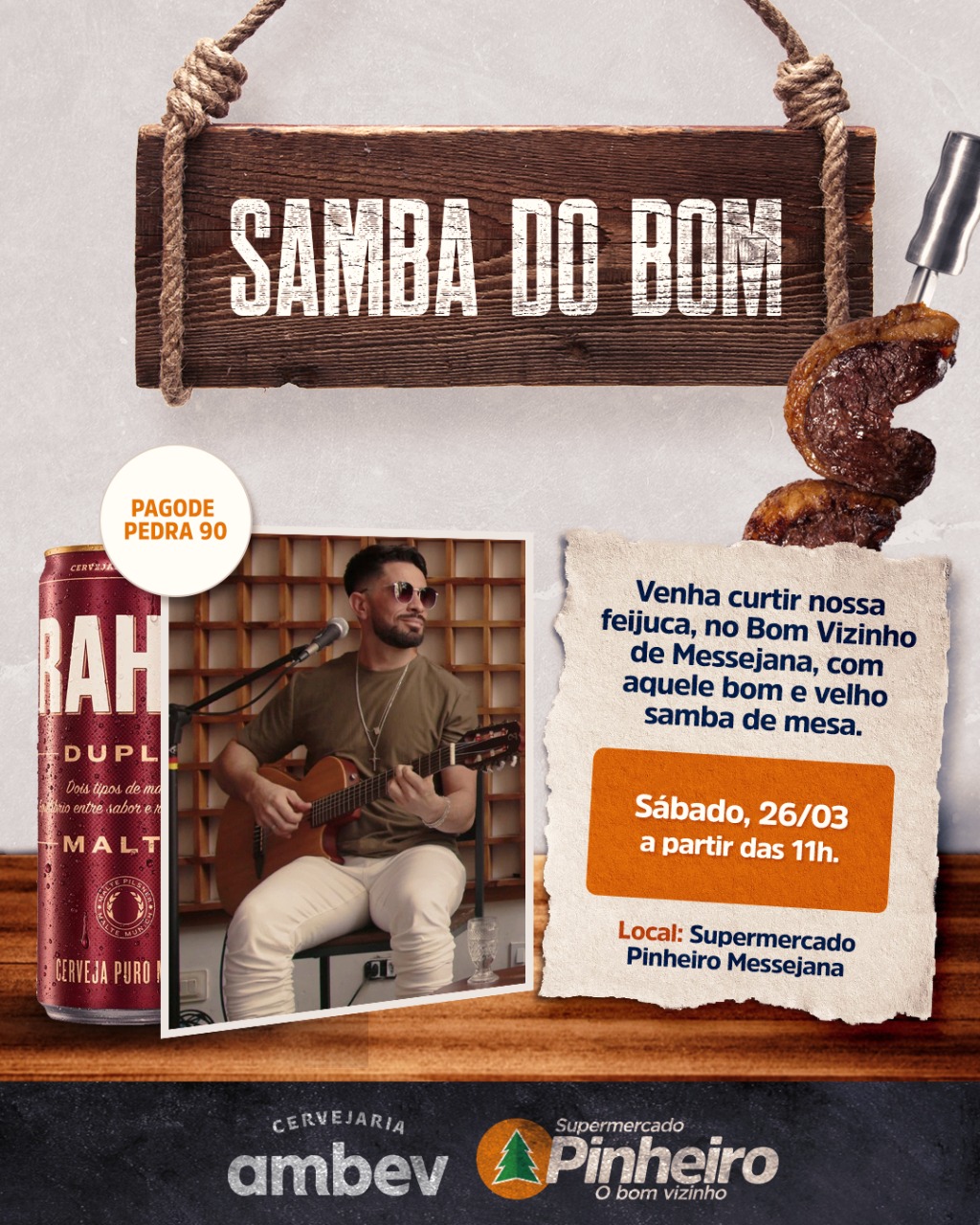 A programação para o final de semana já está garantida. O Supermercado Pinheiro realizará neste sábado (26), a partir das 11h00, mais uma edição do “Samba no Bom”. A animação ficará por conta do Pagode Pedra 90 que comandará uma animada roda de samba na loja da Messejana (Av. Frei Cirilo, 4290). O evento seguirá todos os protocolos sanitários estabelecidos.